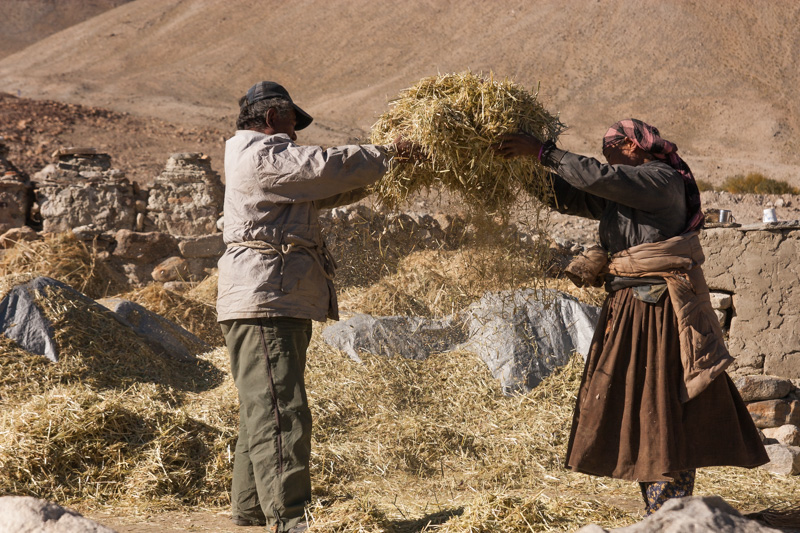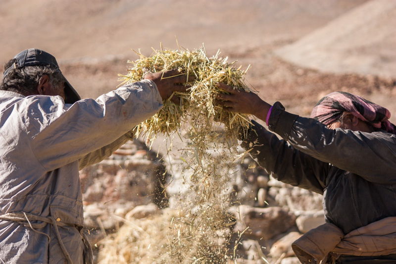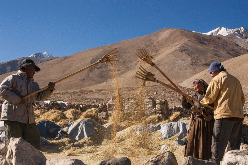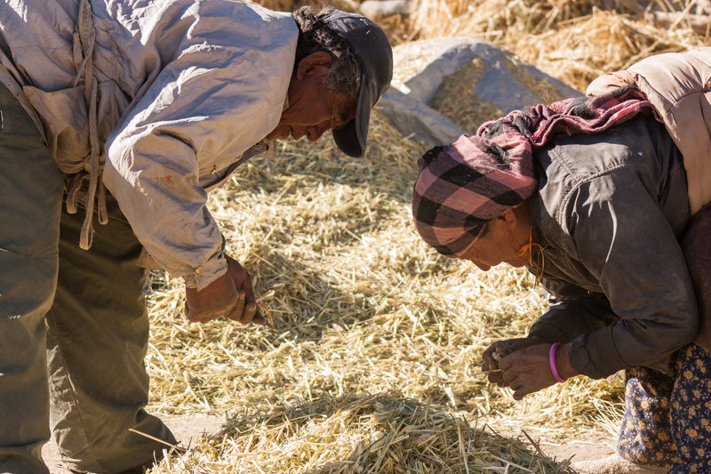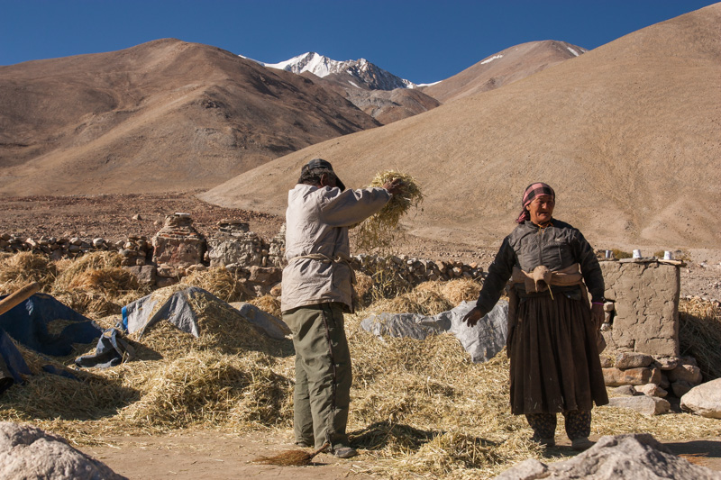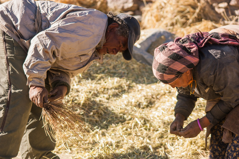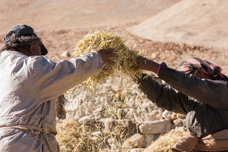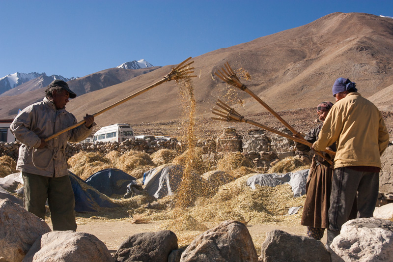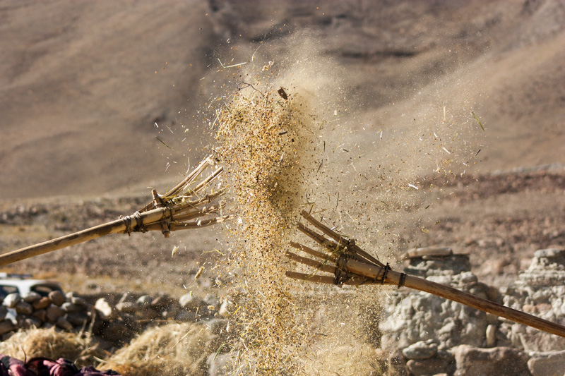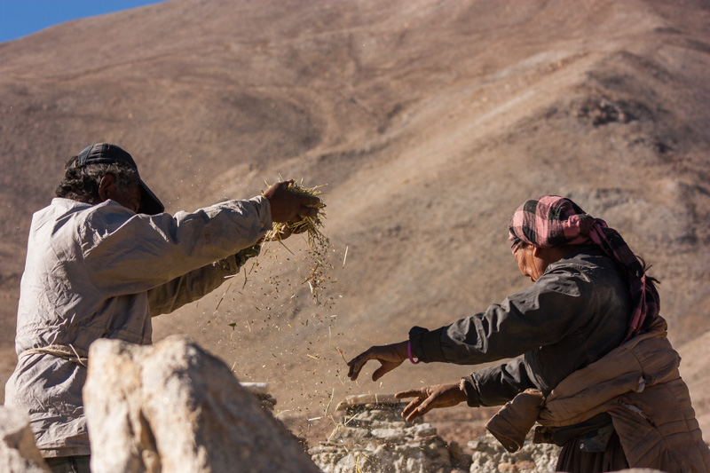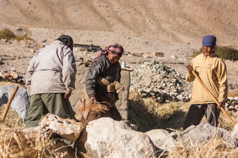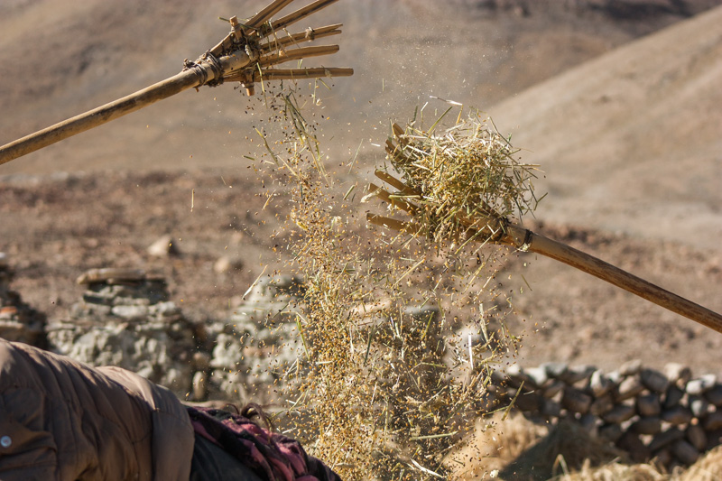 traditional treshing of barley; return journey to leh; strolling around and dining (yummy momos) at leh;