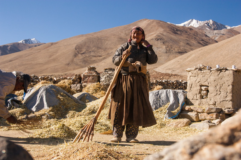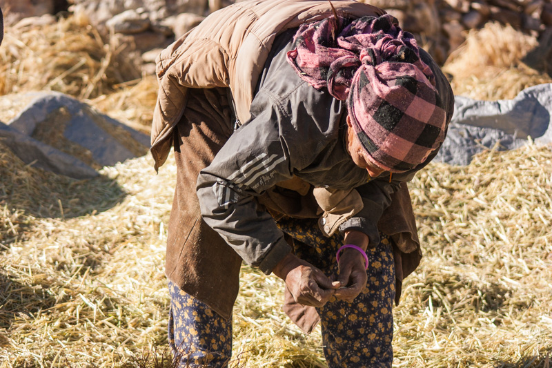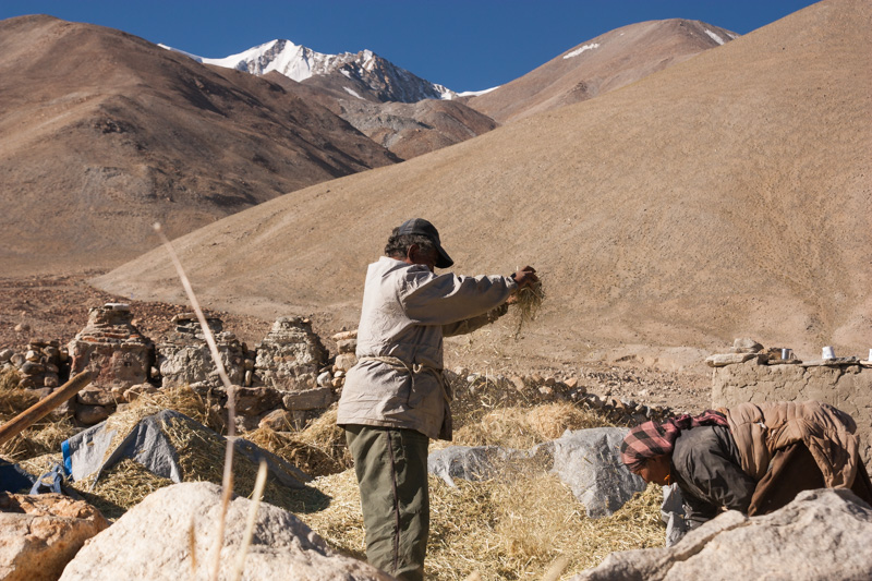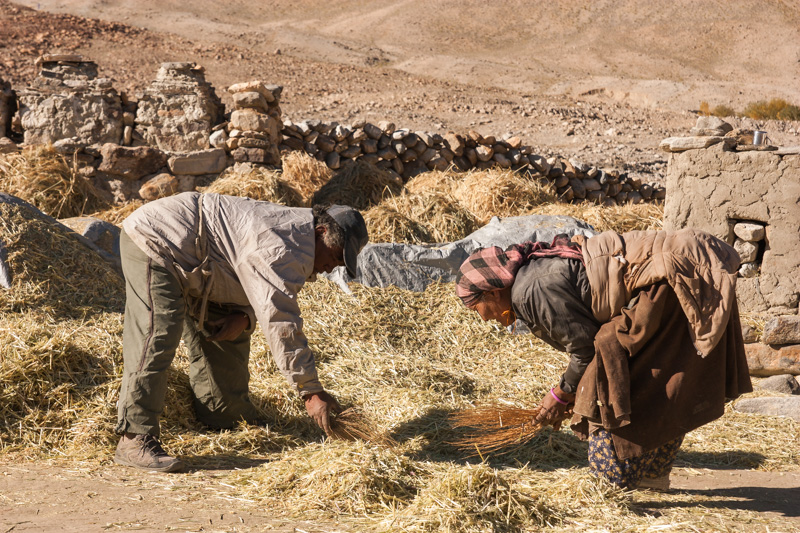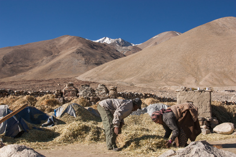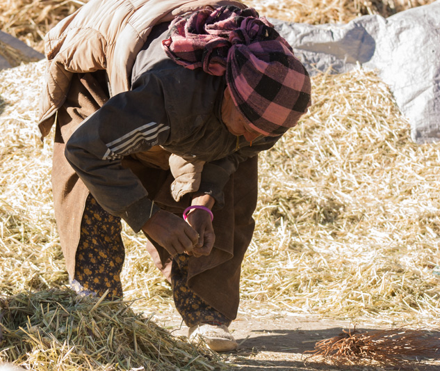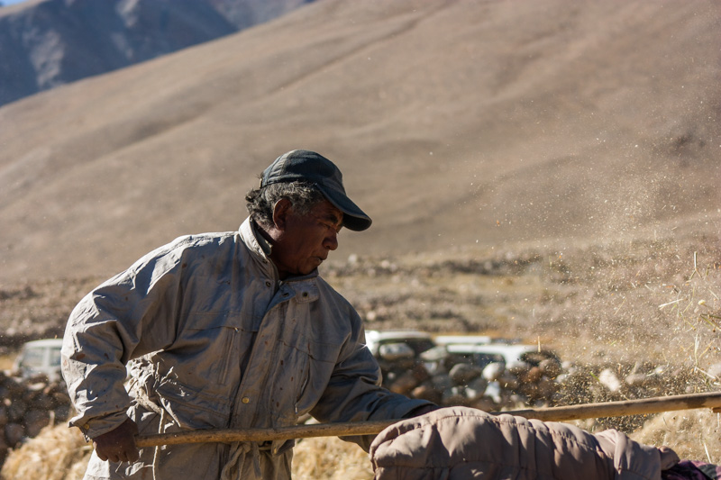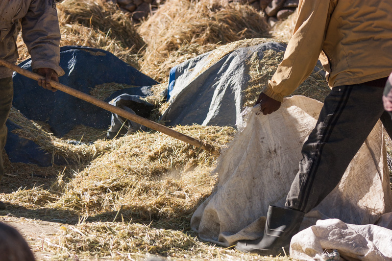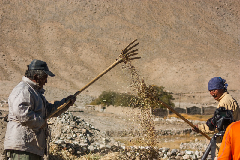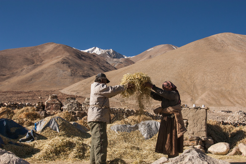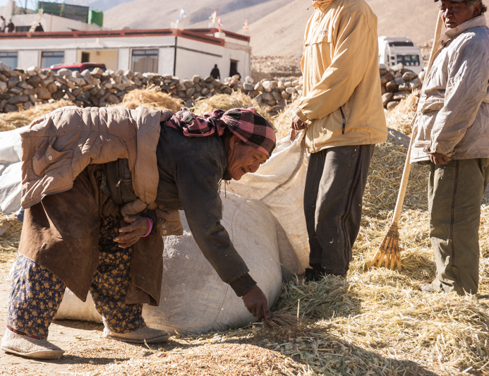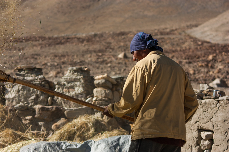 traditional treshing of barley; return journey to leh; strolling around and dining (yummy momos) at leh;